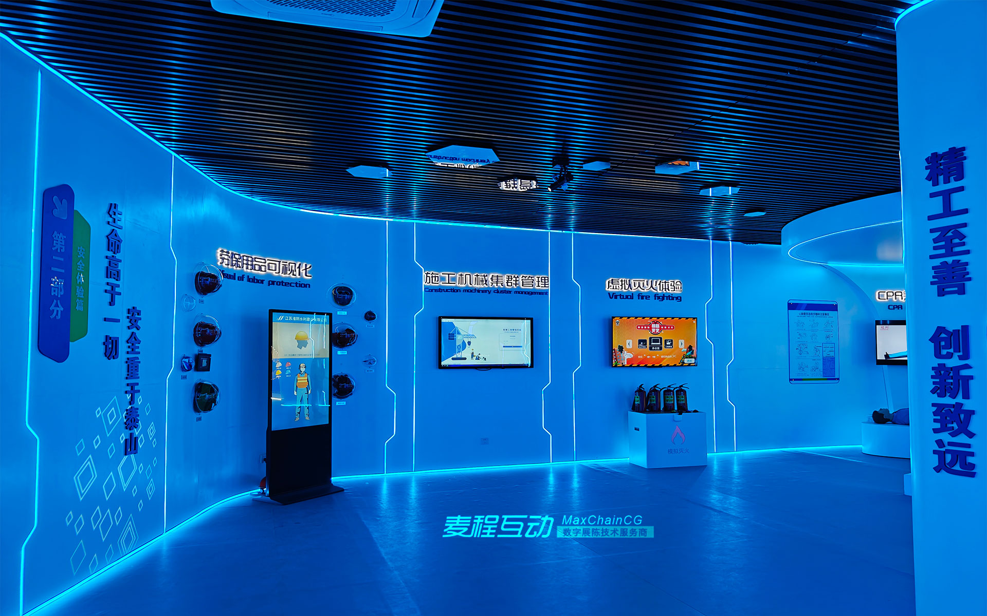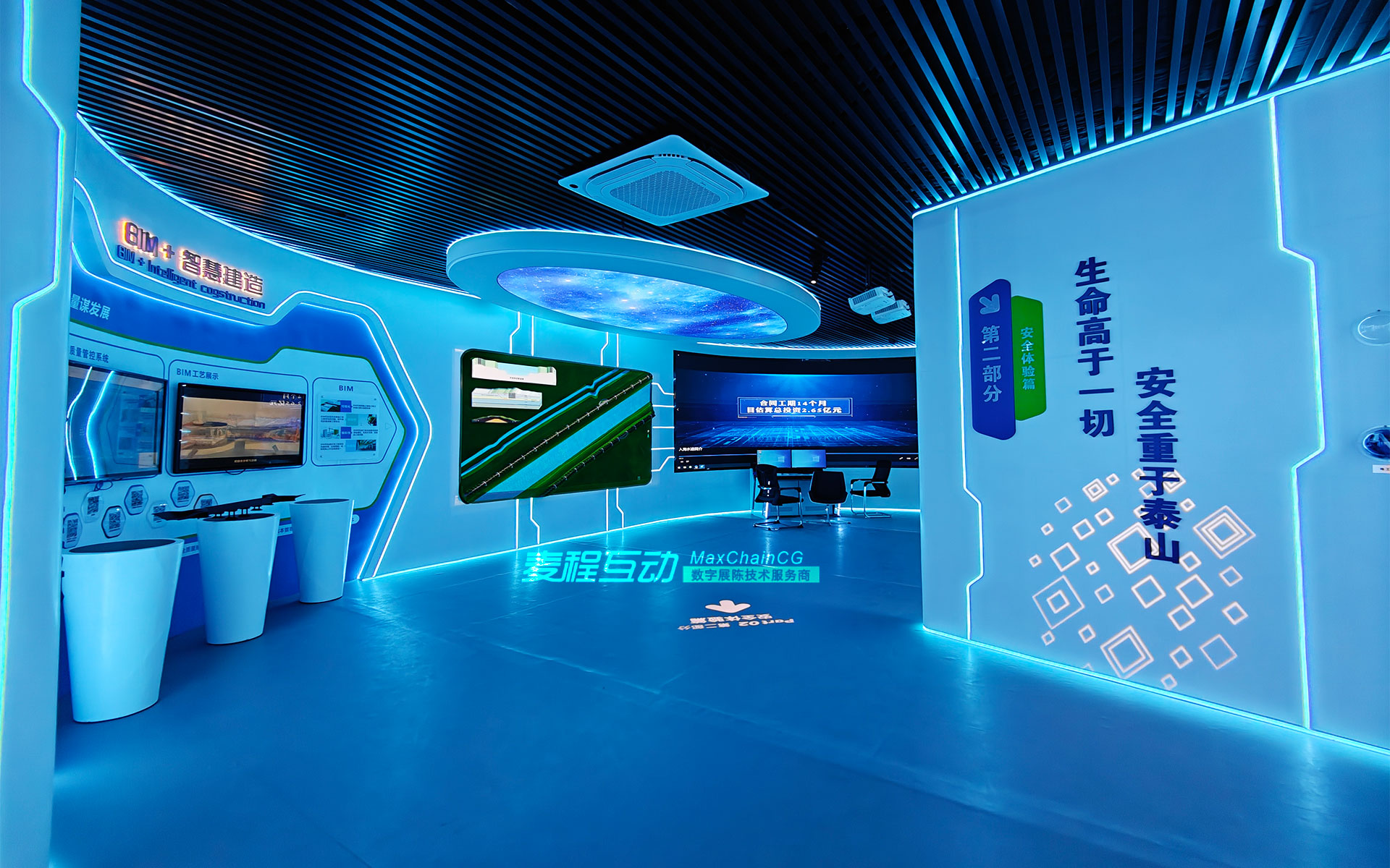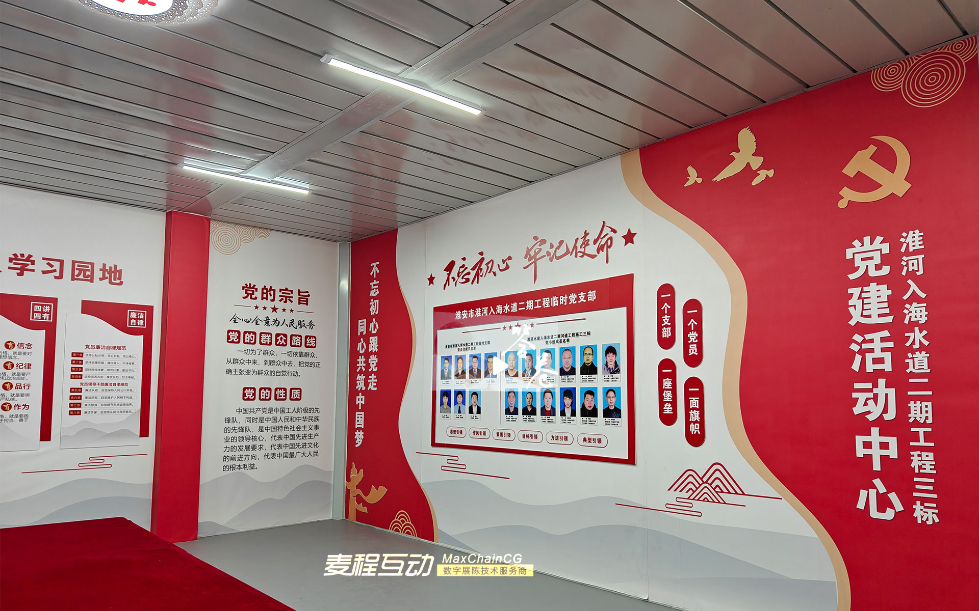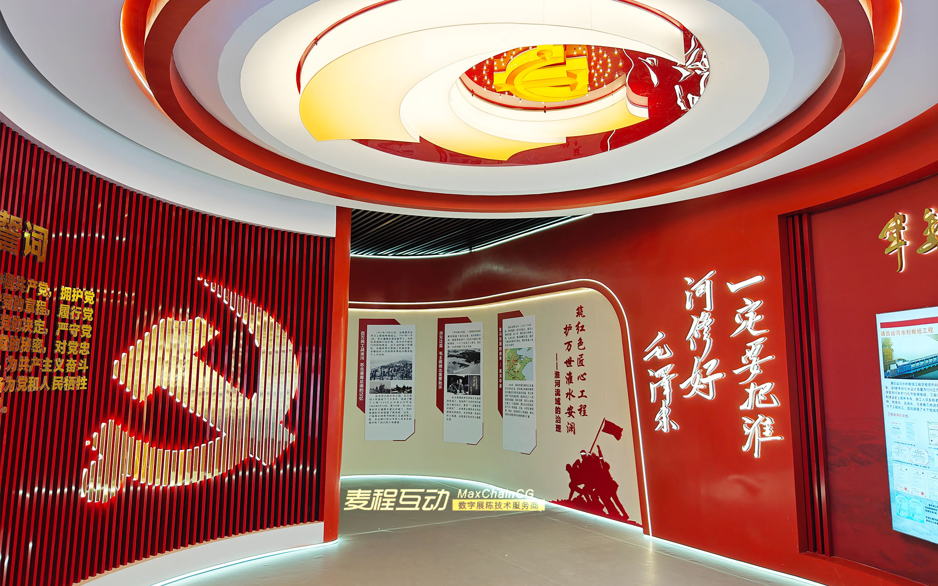麦程互动科技在听取了淮阴水利对该项目的智慧建造中心智慧展厅的要求后,充分理解甲方的项目需求重点展示淮阴水利近年来关于数字孪生水利工程建设的成果,将BIM、人工智能、物联网、云计算、大数据等新一代信息技术深度应用于水利工程施工的案例较好融合在项目介绍中,在此基础上,深度挖掘项目渊源,将淮河的治理历史和淮阴水建的水利铁军精神相结合,体现了水利人优良品质的的传承和发展,该展厅的建设结果得到了甲方的高度肯定。