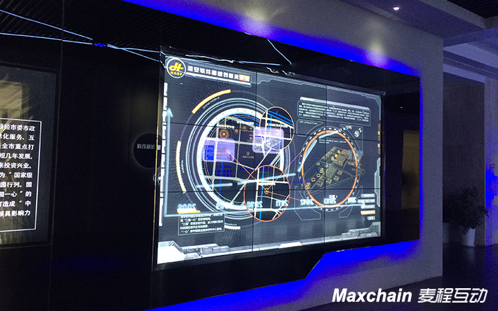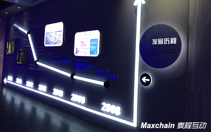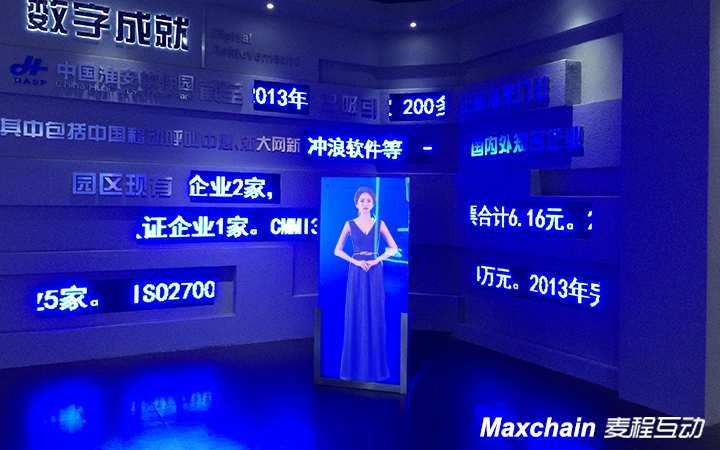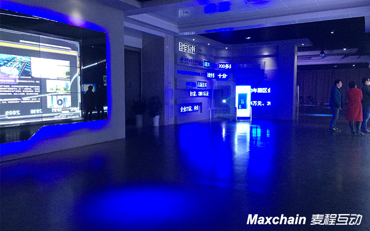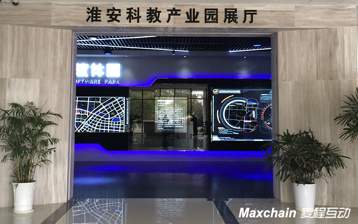 在风格上,我们采取比较前沿的设计方式,运用体感交互,全息显示,透明液晶显示技术,多点触摸技术。作为主要的展示手法。在氛围营造上采用蓝色为主要色调,衬托软件园的高新科技氛围。我们相信,在这些前沿展示手段的衬托下,来宾可以切身的感受到淮安软件园作为国家级企业孵化基地的科技含量,当之无愧为IT高地。