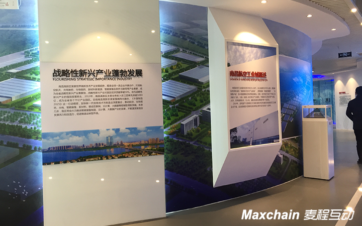 九江经开区产业规划展示馆建于于2015年10月,2016年3月正式向公共开放。重点突出2016—2025年九江经开区新工业十年行动发展规划,集中展示九江经开区的主导产业发展基础、创新创业优势、配套支持体系以及未来发展愿景。展厅由环保节能与新能源汽车产业展示厅、高端装备制造产业展示厅、智能家电产业和电子信息通讯产业展示厅、新材料与新能源产业展示厅、创新创业平台展示厅五个展示厅组成。