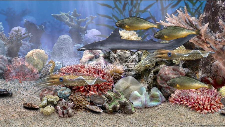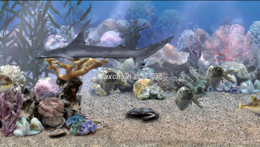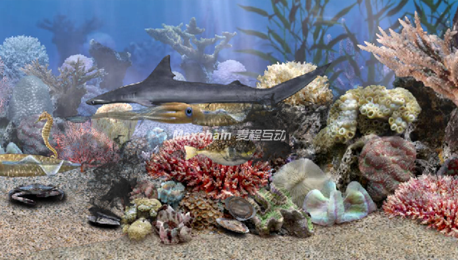 项目地位于宁波的东海牧渔馆内,利用3D动画制作和互动软件相结合,全面趣味的展示海洋生物的多样性和每个生物的特点。