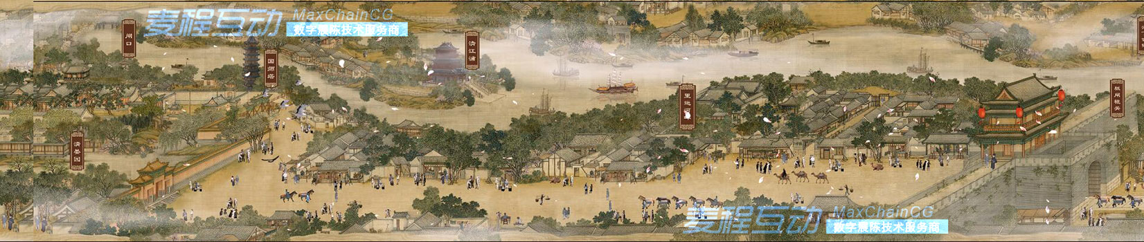 清江浦 河图 动态壁画(三通道融合投影动态古风河图)